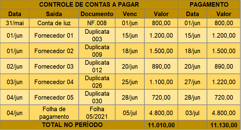 Nesse registro devem constar todas as saídas da empresa. Somente dessa forma será possível fazer um controle rigoroso de todo o dinheiro que sai do caixa da empresa.