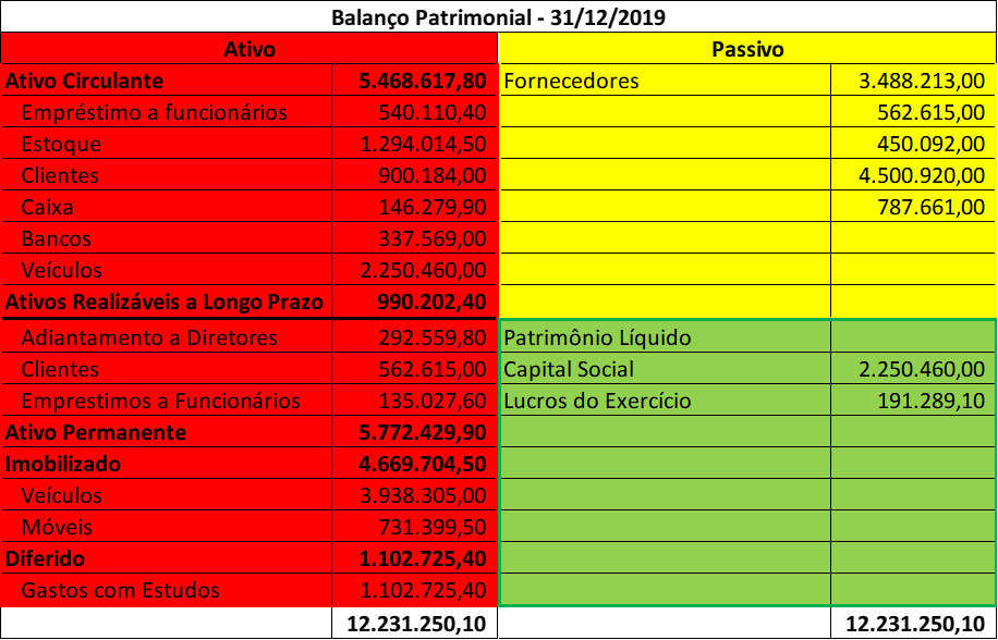 Em um exemplo prático, num cálculo onde o ativo é equivalente a R$ 500 mil, enquanto o passivo é de R$ 300 mil, o resultado do patrimônio líquido será positivo em R$ 200 mil.